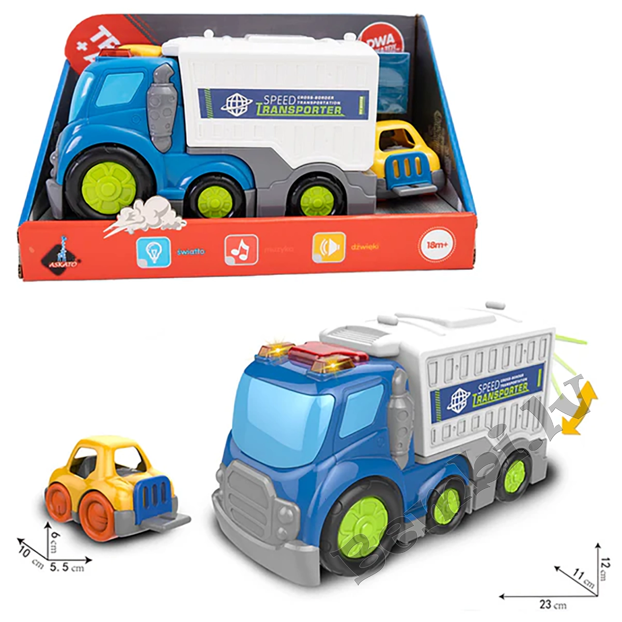Atkritumu mašīna ir aprīkota ar berzes piedziņu un gaismas un skaņas efektiem, padarot katru misiju par aizraujošu piedzīvojumu un sniedzot stundām ilgas izklaides.