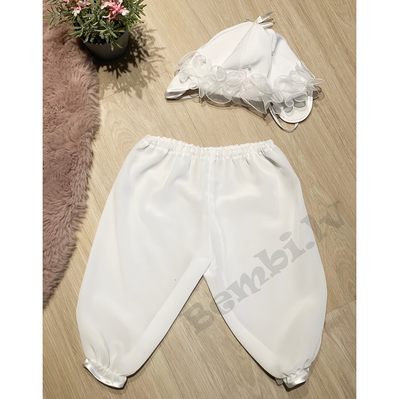 Komplektā ietilpst sienamā cepurīte un bikses.