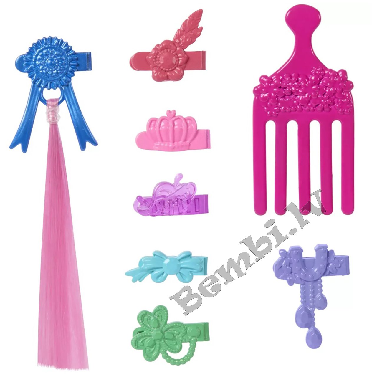Iedvesmojoties no Netflix seriāla “Barbie Mysteries: The Great Horse Chase”, šie rotaļu zirgi ir gatavi sacensties rotaļu laikā. Izvēlies no Bārbijas “Malibu” un Bārbijas “Bruklinas” leļļu labākajiem poniju draugiem Tornado un Pepera. Katram rotaļu zirgam ir īpaši garas krēpes, un komplektā ietilpst matu pieaudzējums, ķemme un sešas burvīgas matu sprādzes. Katrs tiek pārdots atsevišķi, atkarībā no pieejamības. Lelle nav iekļauta. Krāsas un rotājumi var atšķirties.
