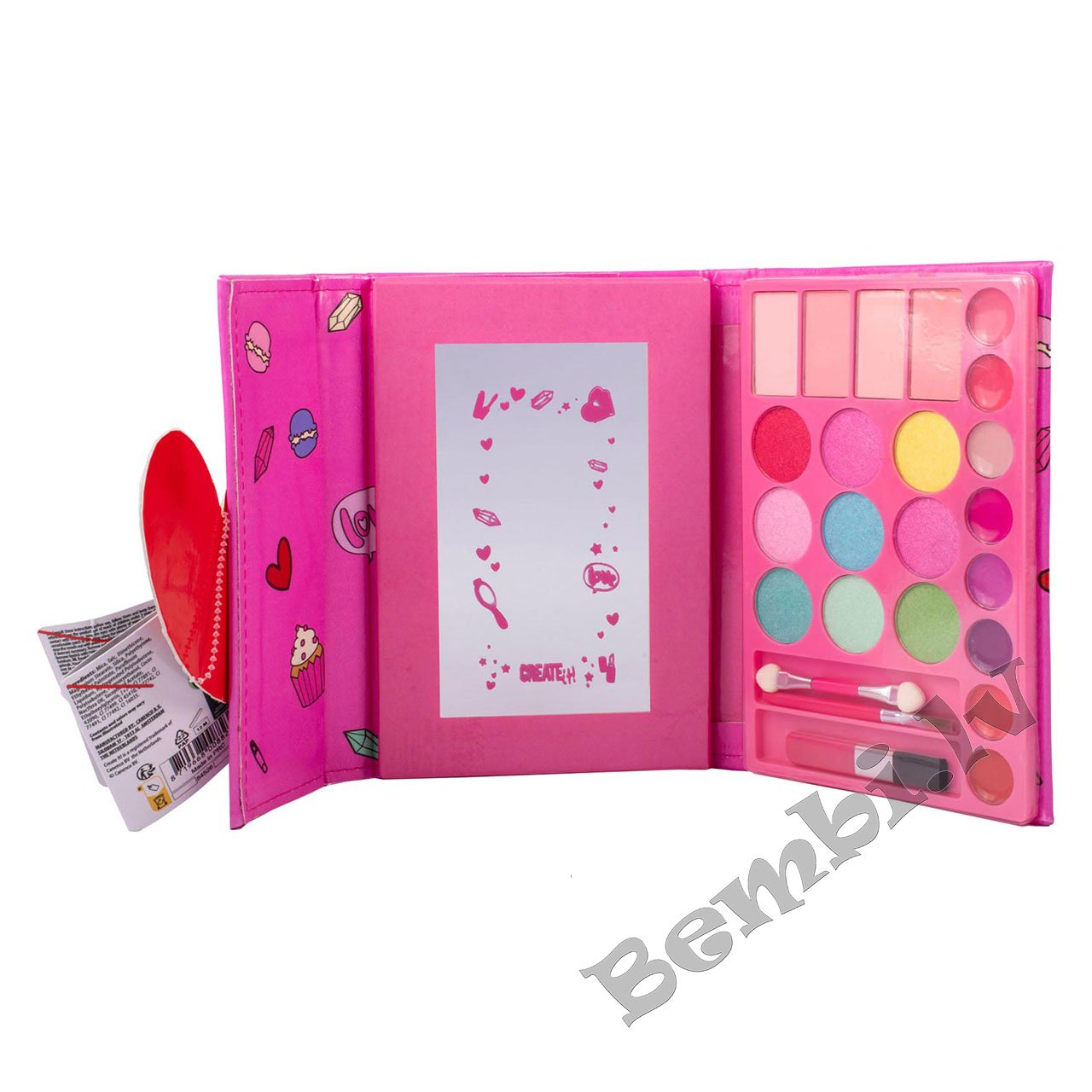 Radi pats! Grims ar magnētisku aizdari. Grāmatas izmēri ir 17 x 12 cm, un tajā iekļauts spogulis, otas, 4 vaigu sārtuma krāsas, 9 acu ēnu krāsas un 8 aromatizētas lūpu un acu krāsas. Piemērots bērniem no 6 gadu vecuma.