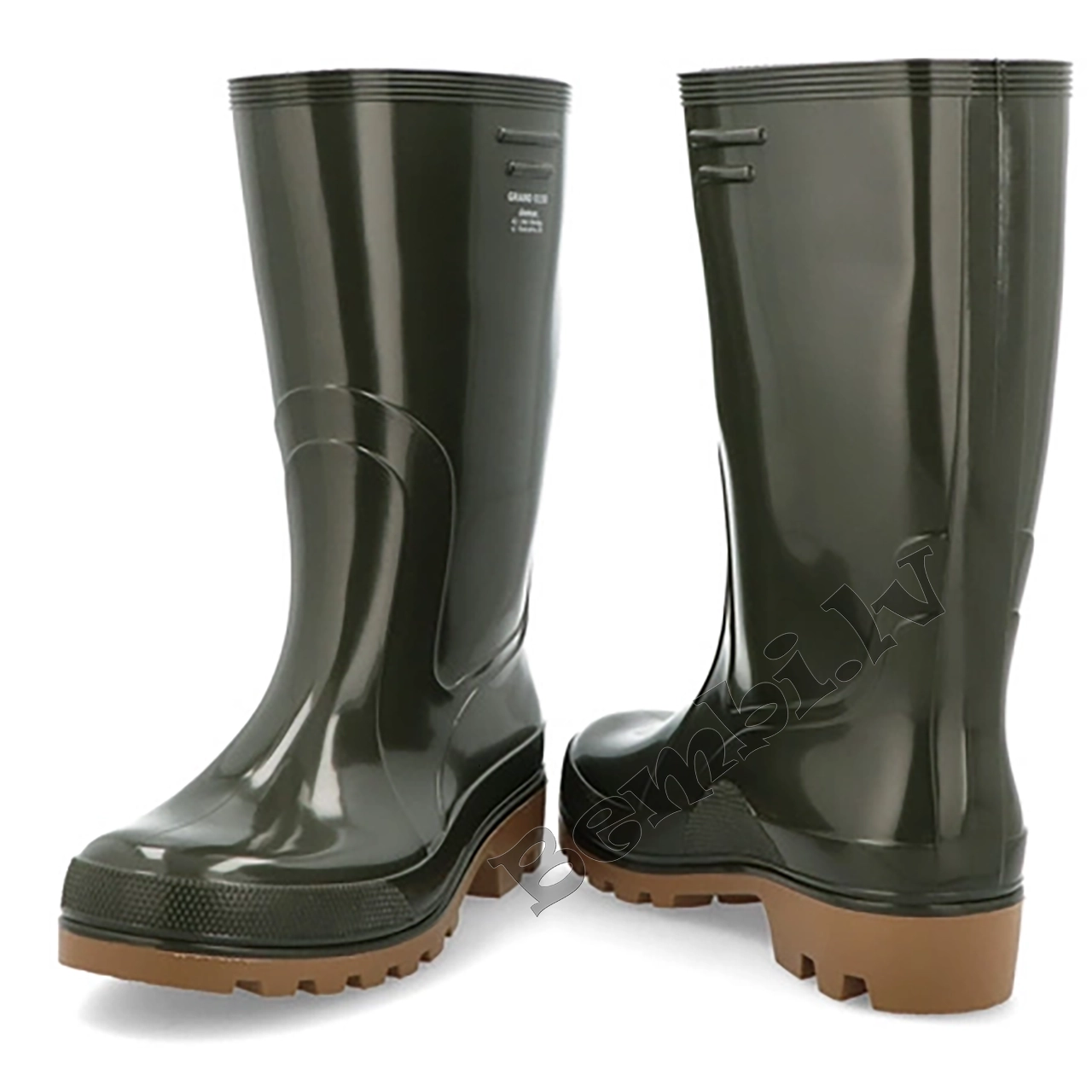 Īpaši izturīgie GRAND vīriešu makšķerēšanas zābaki ir pilnībā izgatavoti no PVC. Tie lieliski aizsargā pēdas no mitruma un netīrumiem. Rūpīgi izstrādātā zole nodrošina lielisku amortizāciju papēža zonā. Šie zābaki ir ideāli piemēroti dārza darbiem, meža pārgājieniem vai makšķerēšanai.
