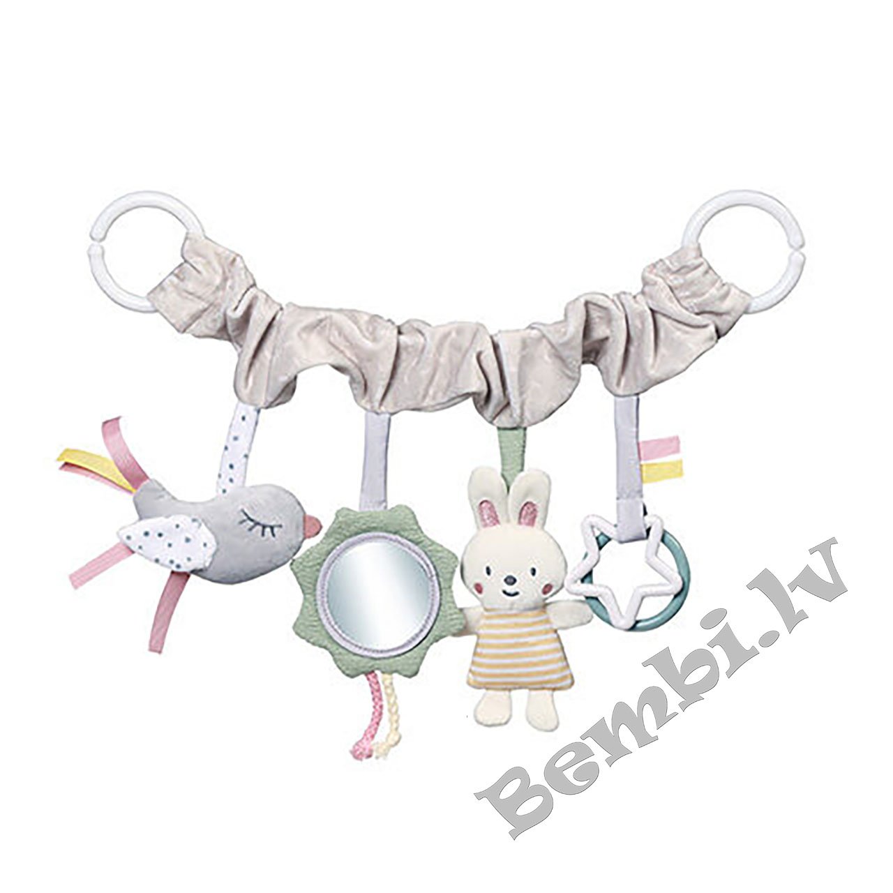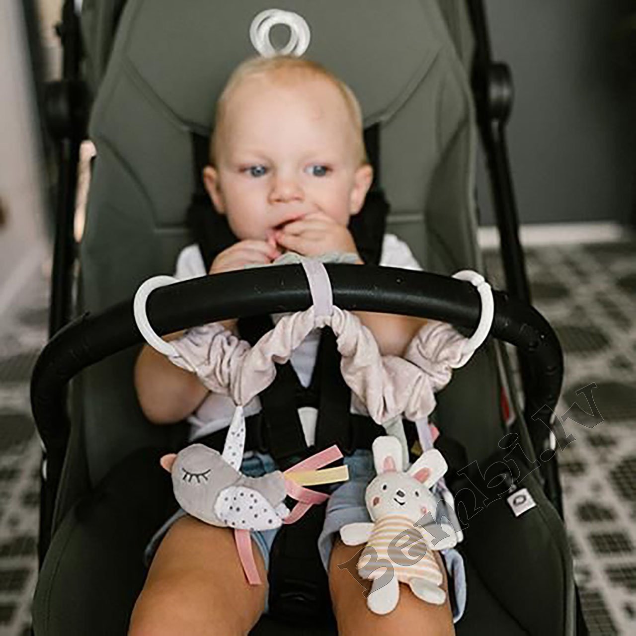 “Carrot & Hop” — izglītojoša ratiņu rotaļlieta ar kontrastējošiem elementiem, kas padarīs jūsu bērna pasauli daudzveidīgāku, vienlaikus atbalstot viņa acu-dzirdes un roku-acu koordināciju. Piestipriniet to pie ratiņiem, bērnu gultiņas vai autokrēsliņa, lai jūsu mazulis būtu nodarbināts pastaigas vai ceļojuma laikā. Rotaļlietai ir piestiprināta čaukstoša lapa un grabošs zaķītis ar kontrastējošas krāsas ausīm, un tā ir pārklāta ar audumu, kas ir ļoti patīkams pieskārienam. Citi jūsu bērnam piedāvātie priekšmeti ir spogulis un maigi grabošs burkāns. Interesanta elementu izvēle, kuriem ir patīkami pieskarties un kas piesaista mazuļa uzmanību ar savu daudzveidīgo dizainu un krāsām. Tie ļauj jūsu mazulim atklāt pasauli un uzlabot savas roku prasmes caur rotaļām.