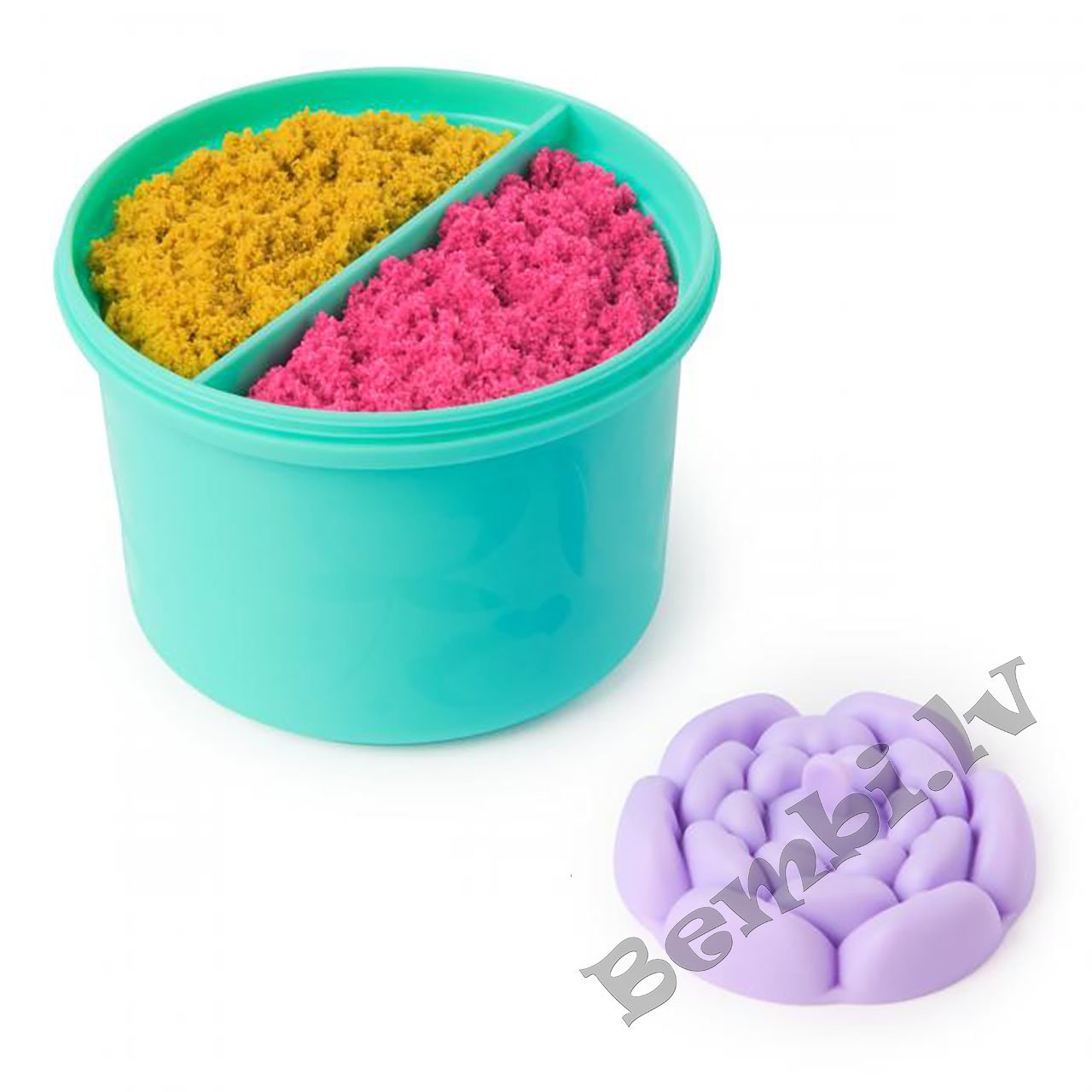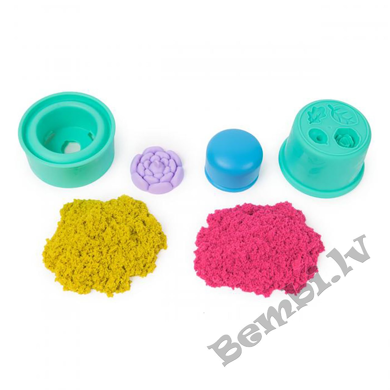 Atdzīviniet ziedus ar kinētisko smilšu komplektu „Spiežamie ziediņi”. Šis kinētisko smilšu komplekts rosinās iztēli un padarīs rotaļāšanos aizraujošu, kad bērni izspiedīs smiltis uz kustīgās rotaļu pamatnes, atklājot burvīgus ziedu darinājumus. Komplektā „Spiežamie ziediņi” ir 227 g neona rozā un dzeltenu kinētisko smilšu, puķupods un veidne, kā arī papildu veidnes poda apakšā. Šis komplekts ir obligāti nepieciešams pavasarīgiem priekiem. Uzklājiet smiltis uz pufīgās pamatnes un spiediet uz leju, lai izspiestu ziediņu — kad veidne tiek pacelta, zieds maģiski atveras. Sajauciet smiltis, lai iegūtu koraļļu oranžu krāsu, pēc tam veidojiet rozes, bites un lapas ar puķupoda veidnēm un lieciet ziediņiem atkal atvērties. One and Only kinētiskās smiltis ir izgatavotas no dabīgām smiltīm, kas salīp, atvieglojot tīrīšanu, un nekad neizžūst. Ļaujiet tām plūst caur jūsu rokām – smiltis ir tik patīkamas, ka jūs tās nevarēsiet nolikt!