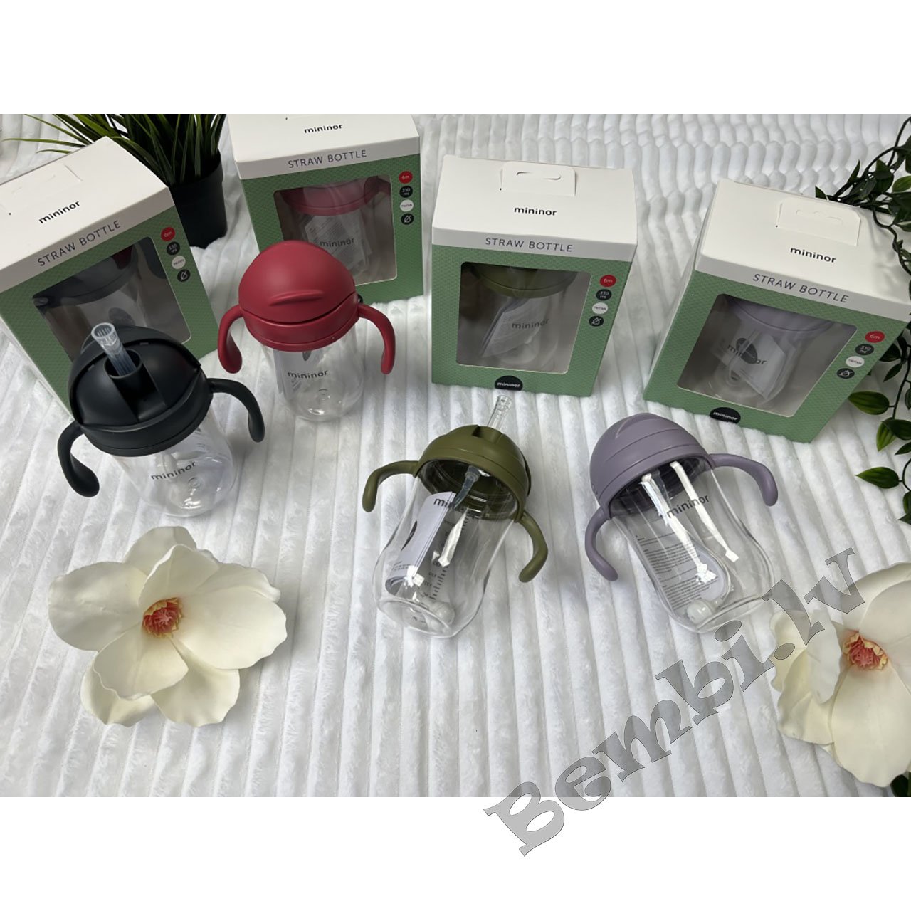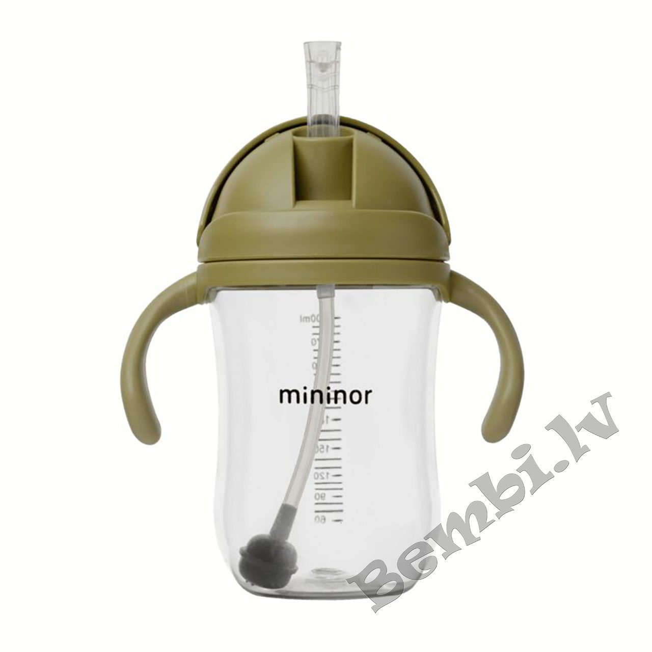 MININOR Bērnu Krūze ar salmiņu un rokturiem, zaļa 330ml