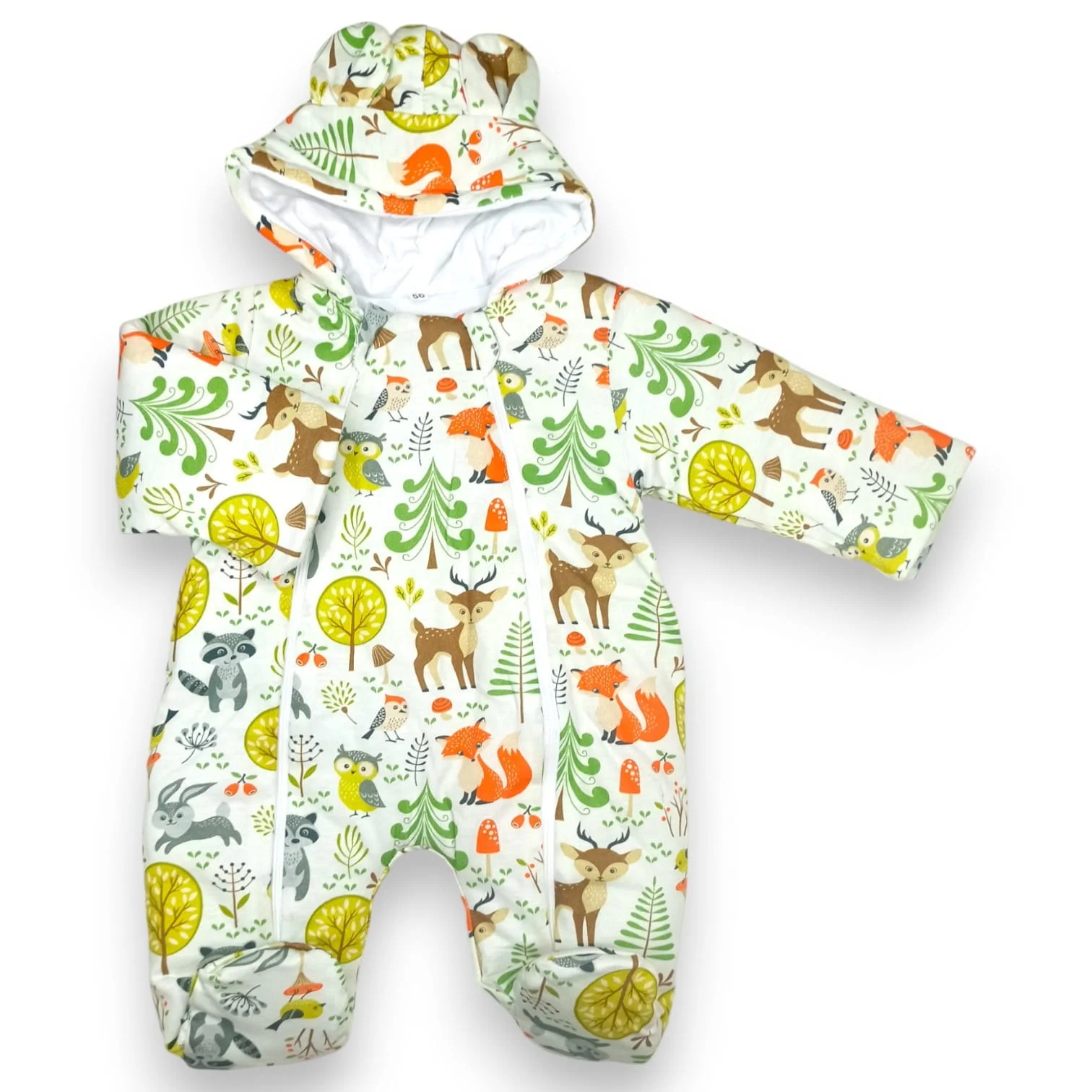 – Šis kombinezons ar kapuci un austiņām ir piestiprināms, pateicoties rāvējslēdzējiem abās pusēs. Jūs varat ātri un vienkārši apģērbt savu mazo, ideāli piemērots rudenim un pavasarim.