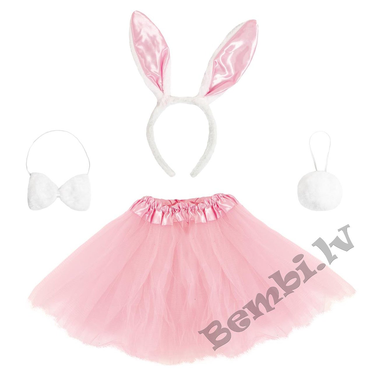 Rozā zaķa komplekts ir lieliska izvēle dažādiem gadījumiem, kas noteikti liks ikvienai mazai meitenei justies īpašai. Komplektā ietilpst burvīgi rozā svārki un balta galvas saite ar zaķa ausīm, kas rotāta ar elegantu tauriņu un zirgasti.