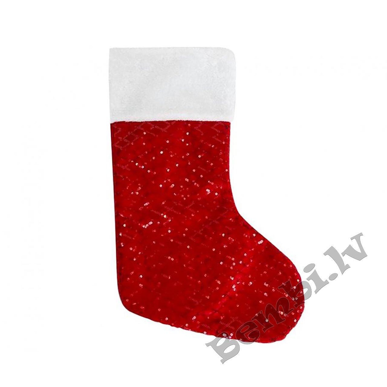Ziemassvētku zeķe, sarkana, ar zeltainu ziemeļbriedi, 49x22 cm